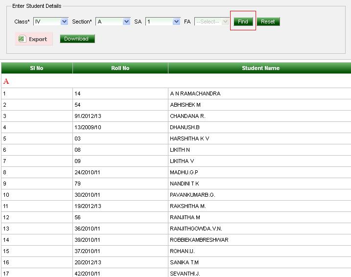 It helps you to generate report of Term(SA) and Test(FA) for each and every student in a single class and section with overall marks grade wise of Term(SA) and Test (SA).