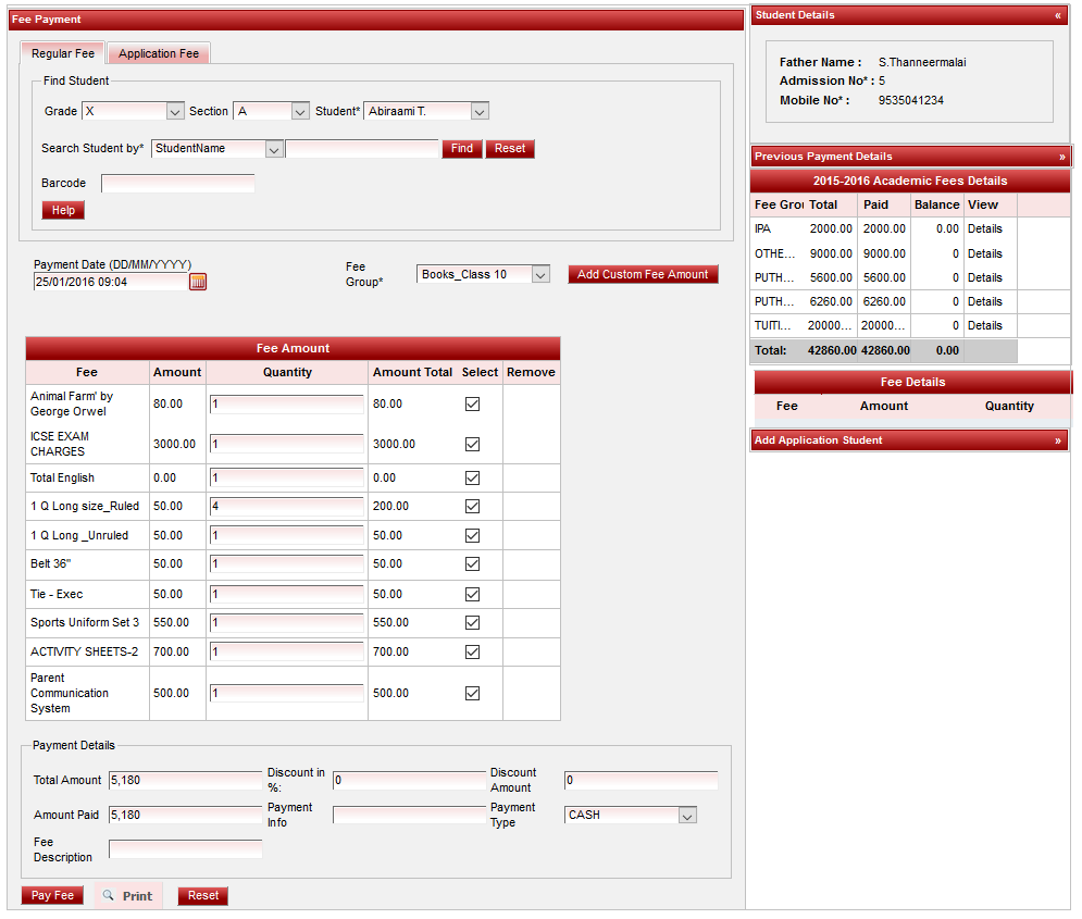 Before go to Fee Payment menu in Admin master ,make sure material and material group has to be updated in fee,fee group and fee amount respectively in master as shown below.