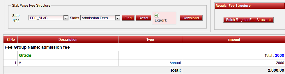 Slab wise Fee structure is used to view fee structure based on the the slab created and assigned to the fee group.