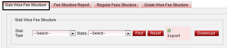 To open this type of fee structure click on "Slab Wise Fee Structure" under "Fee Structure".