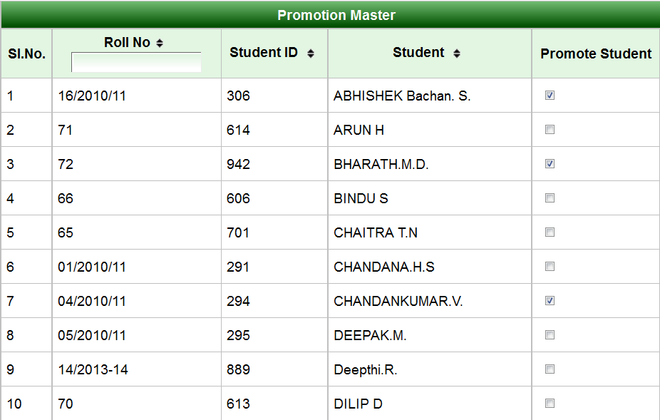 Following page will be displayed with list of students who has to be promoted (i.e. students of From Class).