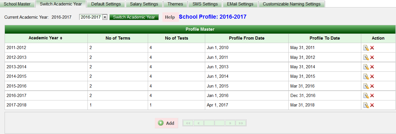 Once you soft switch the year, you will be able to view the details of the selected Academic Year View.