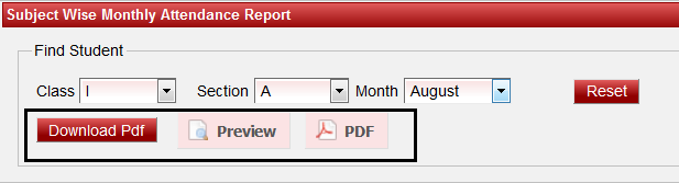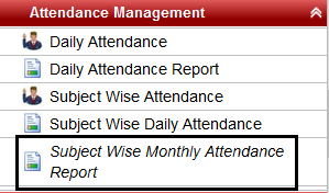 Attendance Management --> Subject Wise Monthly Attendance Report