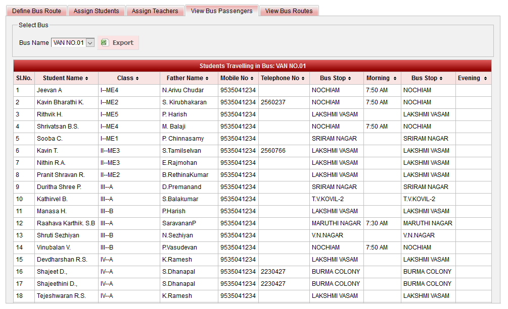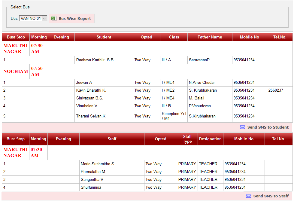 Generate Transport Reports , to track  who are student / staff  are traveling in which Vehicle.
