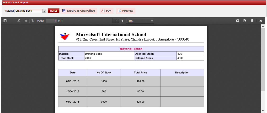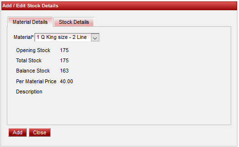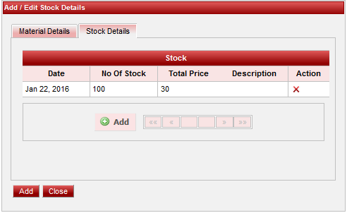 3.Finally click on Add button.You can see the material stock added as shown below.
