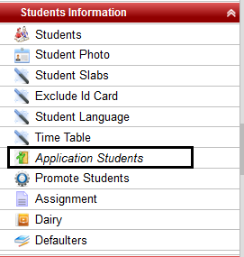 | Select the Class. As per the class selected, the student which were added in that particular class will be displayed in the "Student Name".